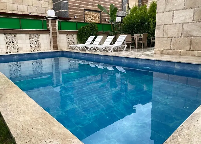 宿泊はDavutlar Sahilから5分で車で行けます. Tortuga Pirate Island Theme & Water Parkはヴィラの近くにあります.